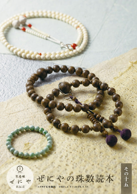 ぜにや秘蔵素材や希少な素材も登場。ご好評いただいております珠の形に特化した念珠も掲載しております。