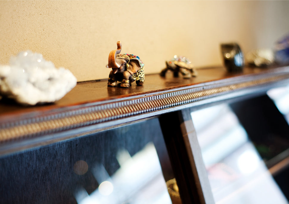 仕上がりを待つ間も、お茶を飲んだり、東南アジア等から集めた調度品を眺めたり。お客様に思い思いくつろいで頂けるギャラリースペースがぜにやの魅力です。