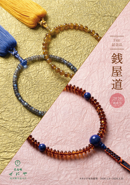 ぜにや市場では西本願寺前本店にてリリースされる2026年・新春の新作念珠の数々をWEB上にて一挙にご覧いただく事が可能なお店です。