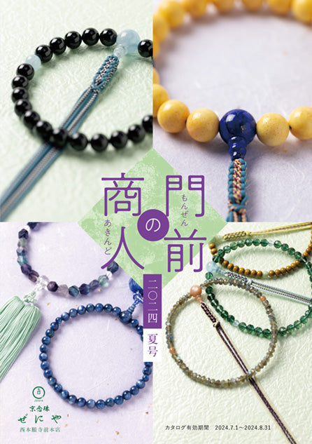 ぜにや市場では西本願寺前本店にてリリースされる2024年・夏の新作念珠の数々をWEB上にて一挙にご覧いただく事が可能なお店です。