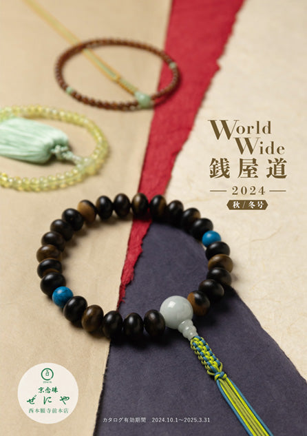 ぜにや市場では西本願寺前本店にてリリースされる2024年・秋冬の新作念珠の数々をWEB上にて一挙にご覧いただく事が可能なお店です。