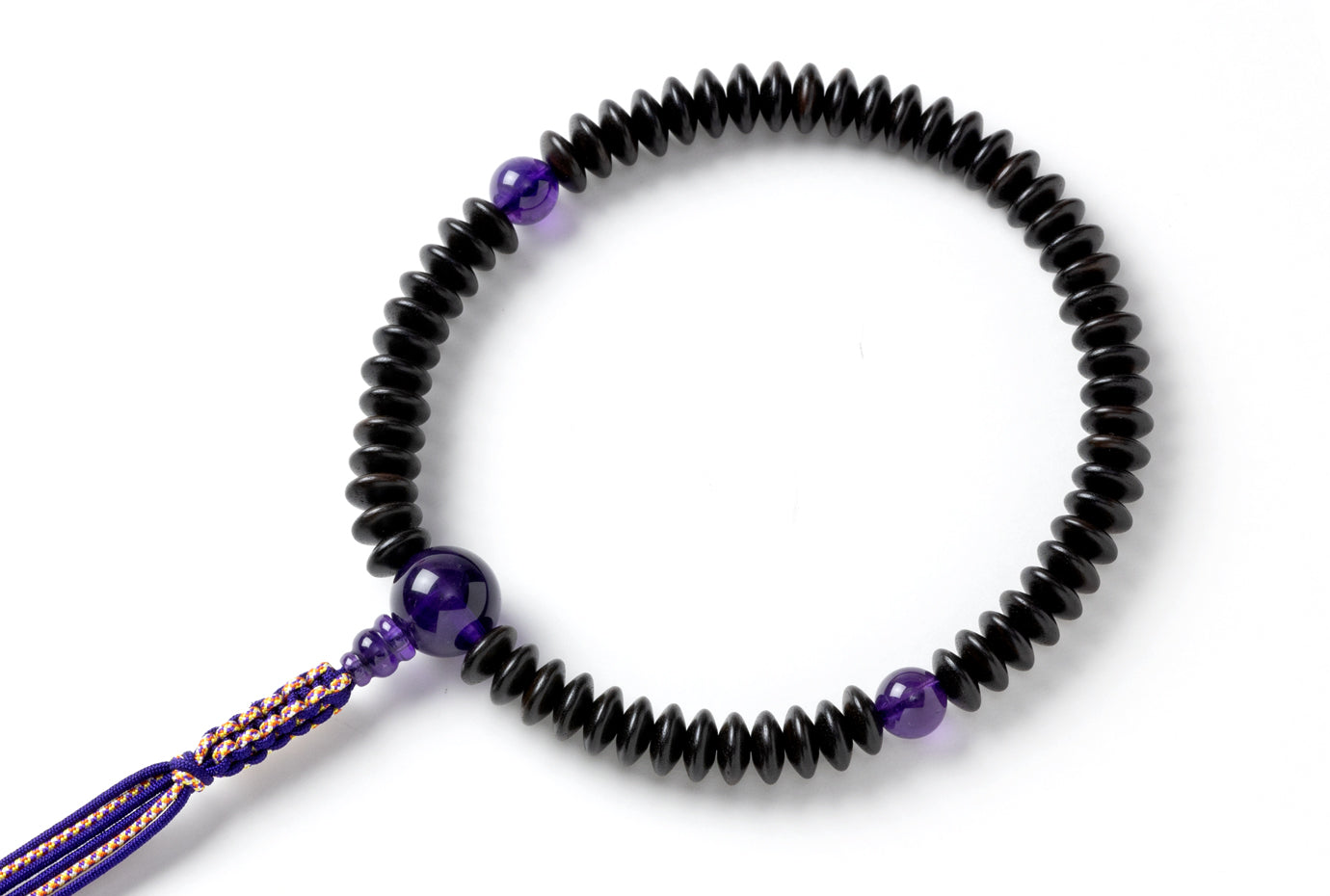 艶消黒檀5×10ミリ平玉単念珠紫水晶仕立