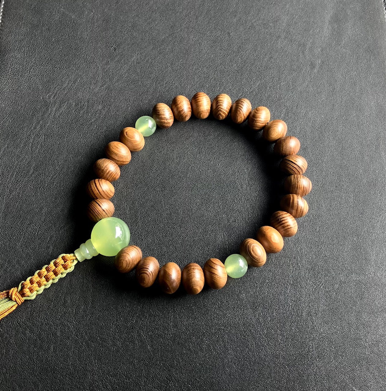 老杉12x16ミリみかん玉単念珠グリーンネフライト仕立