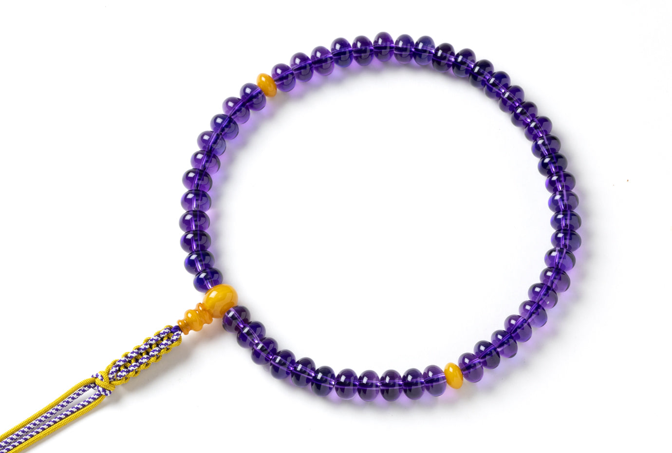 パープルクオーツ6×9ミリみかん玉単念珠老琥珀仕立