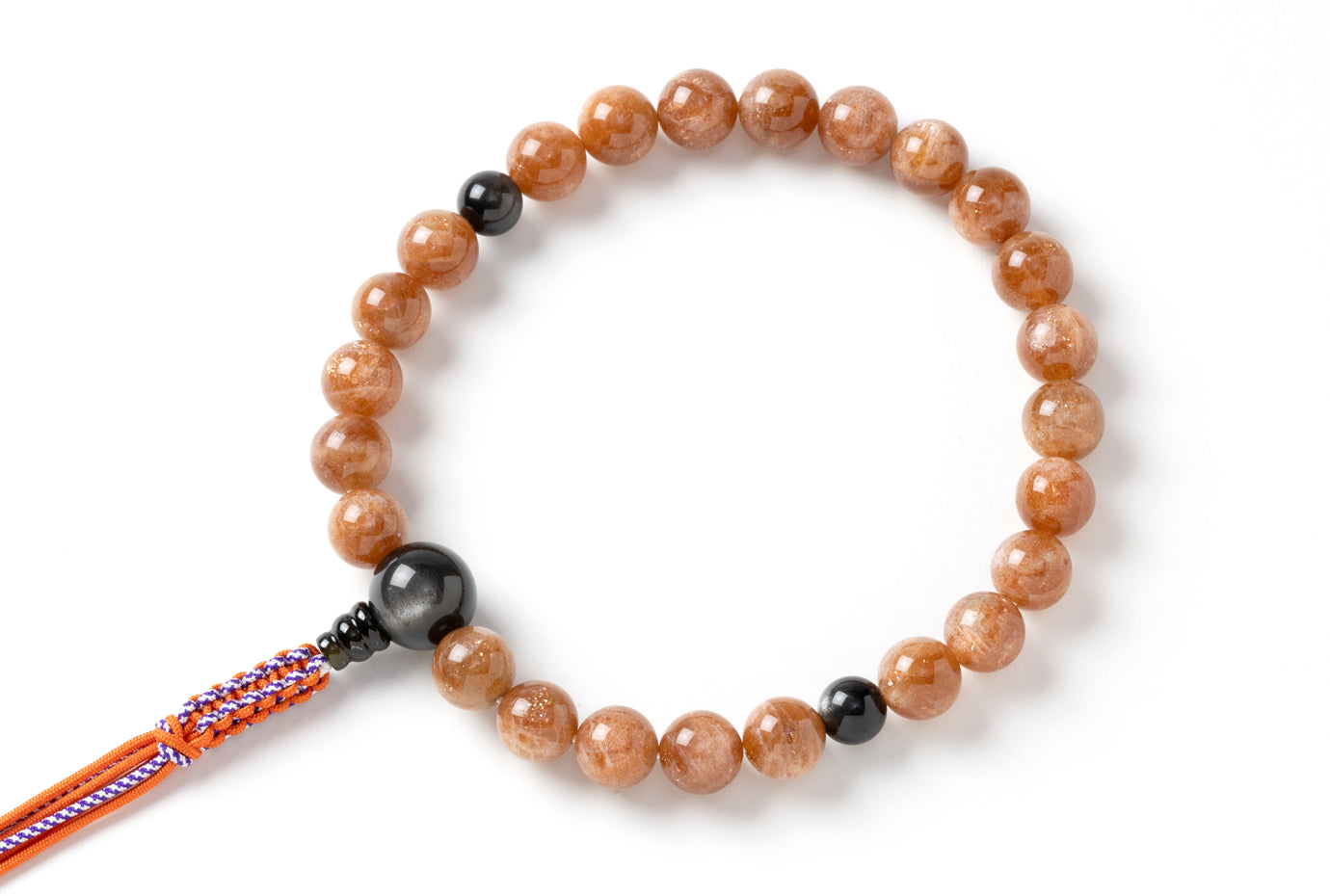 オレンジサンストーン12ミリ24玉単念珠シルバーオブシディアン仕立