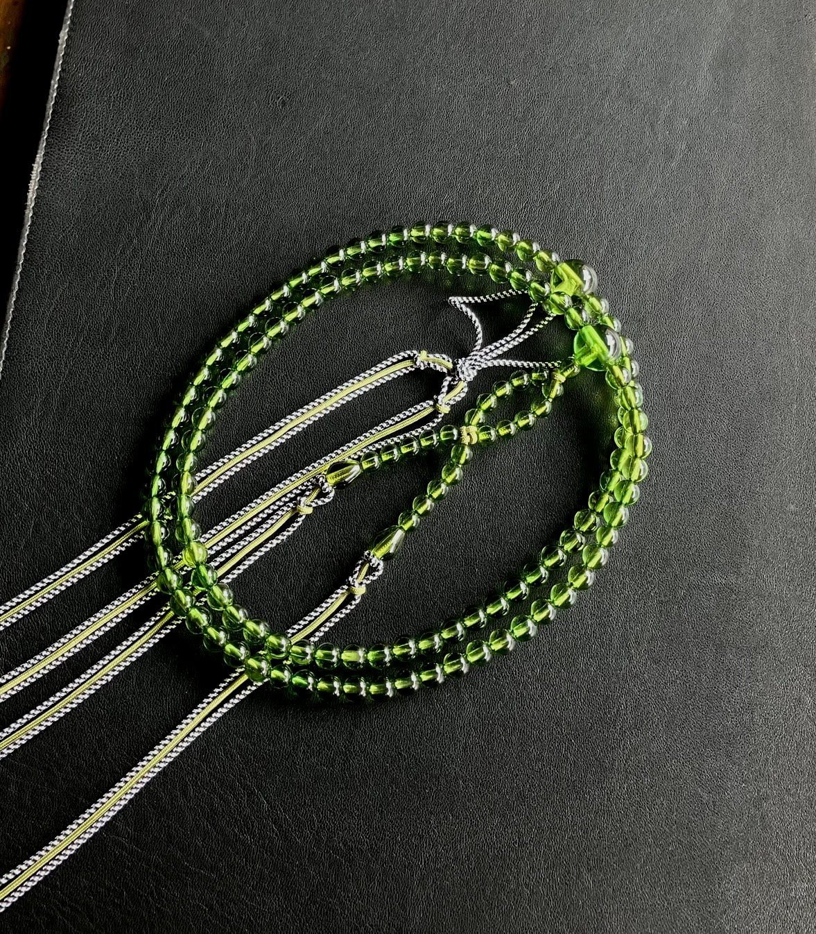 グリーンアンバー尺二寸布教用念珠共仕立