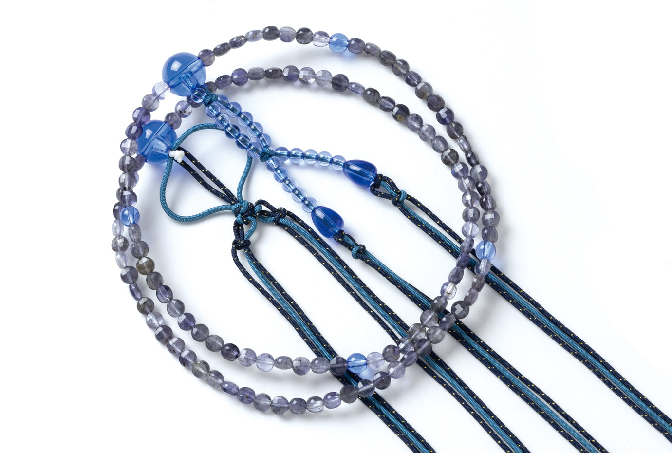 アイオライト6ミリコイン型切子尺一寸布教用念珠ブルークオーツ仕立