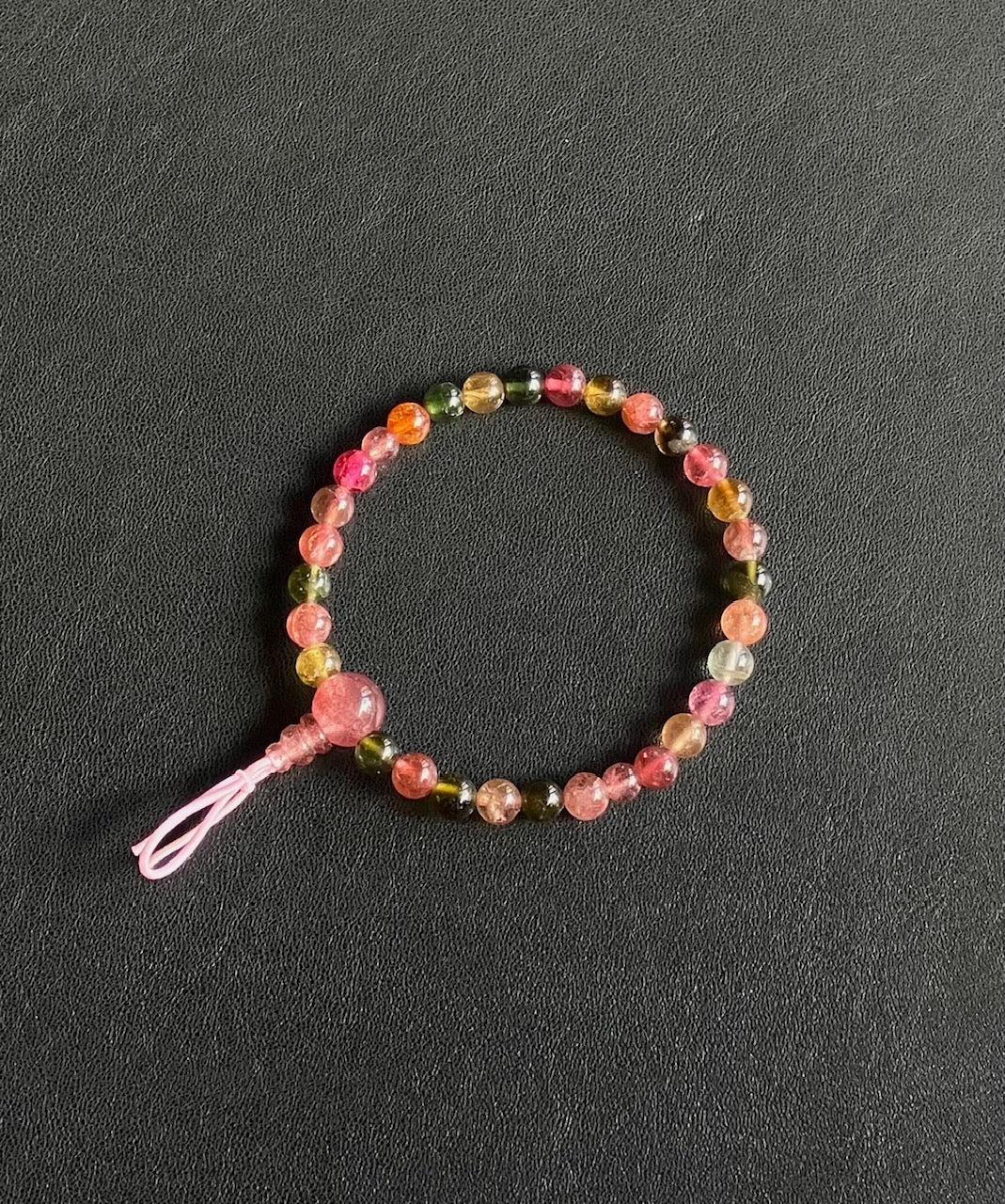 MIXトルマリン6ミリ腕輪念珠ストロベリークオーツ仕立