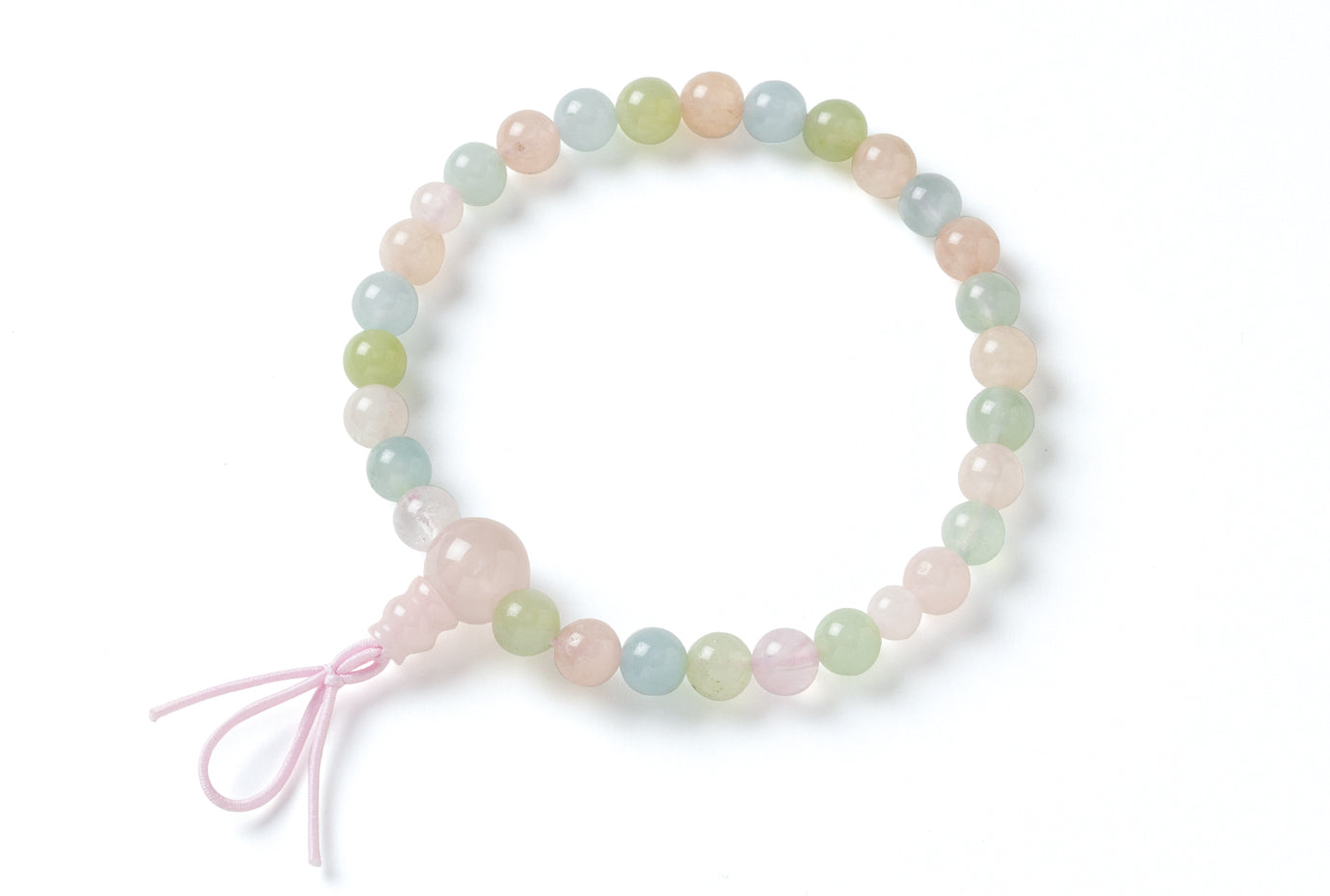 マルチベリル6ミリ腕輪念珠ローズクオーツ仕立