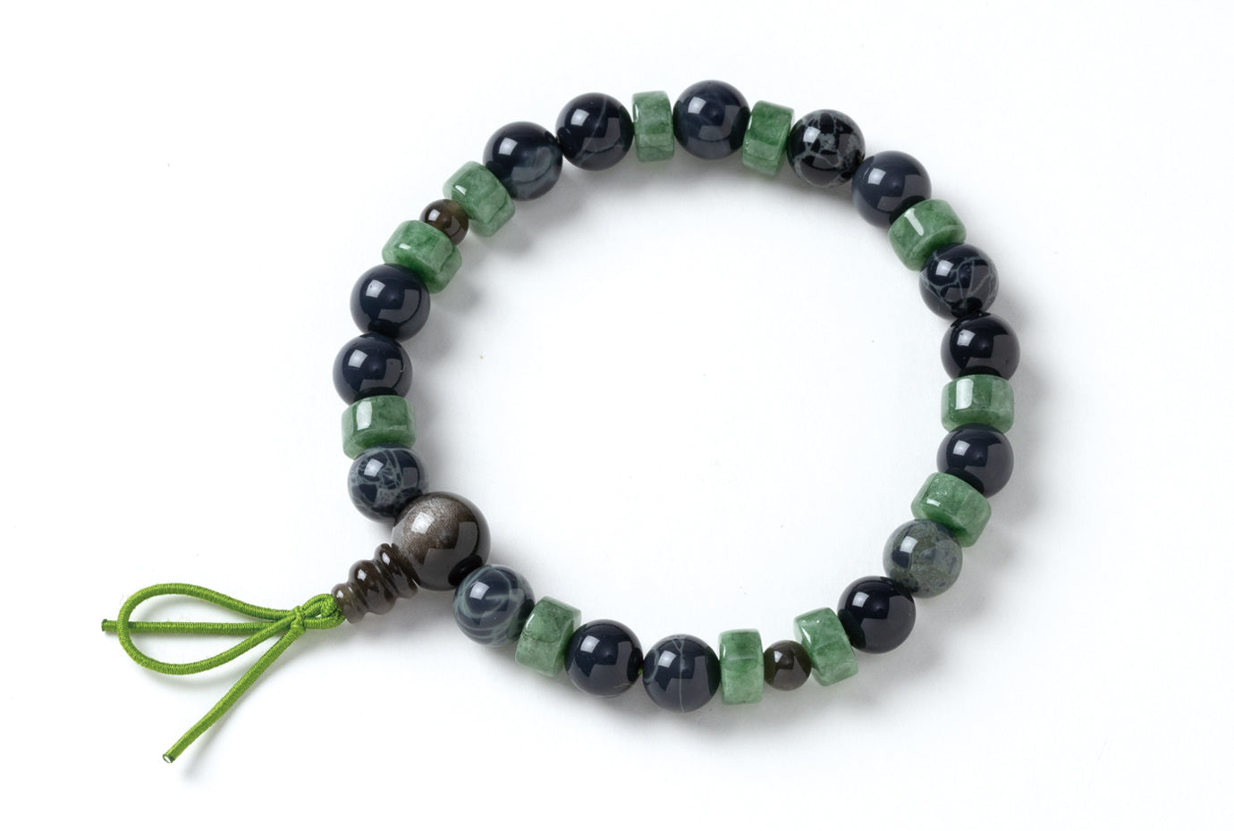 スパイダーウェーブオブシディアン8ミリ/翡翠切立腕輪念珠シルバーオブシディアン仕立