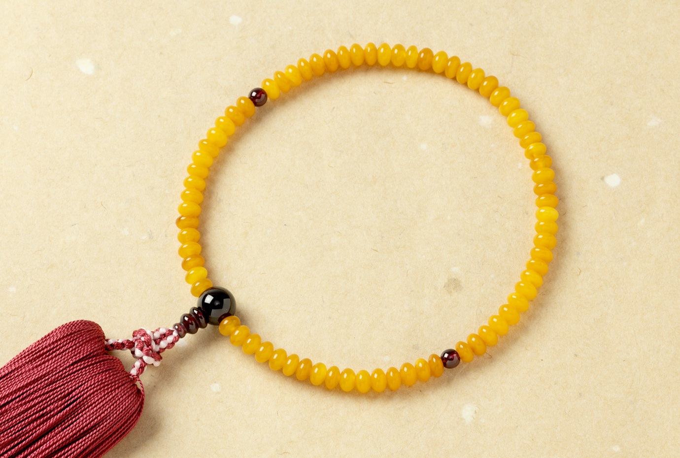老琥珀4×6ミリ単念珠ガーネット仕立