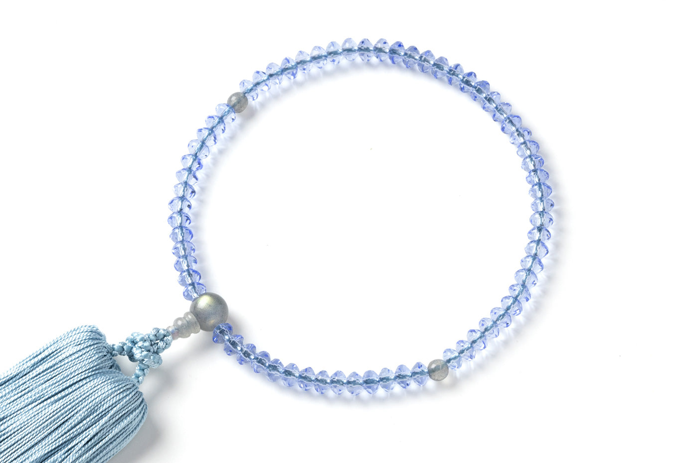 ブルークオーツ4×6ミリ切子単念珠ラブラドライト仕立